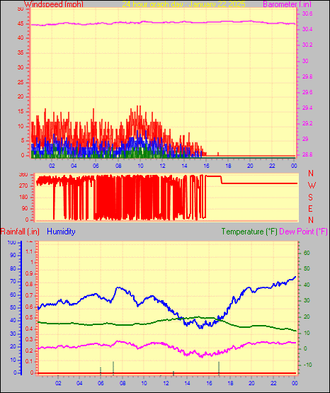 Maximum windspeed = 15.0 mph on day 02 at time 17:17
