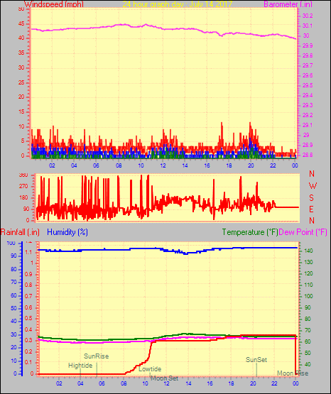 Minimum dewpoint = 64.7°F on day 28 at time 16:35