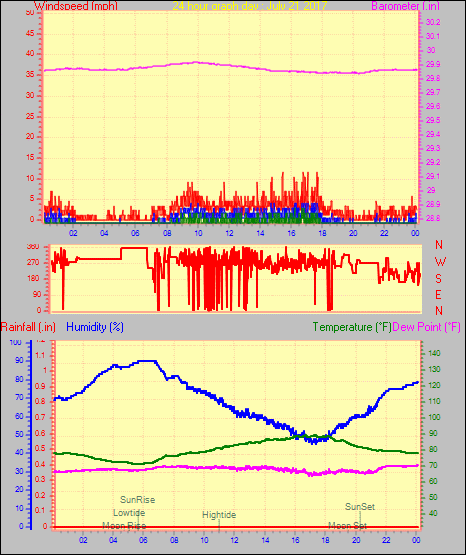 Maximum dewpoint = 69.1°F on day 29 at time 00:52