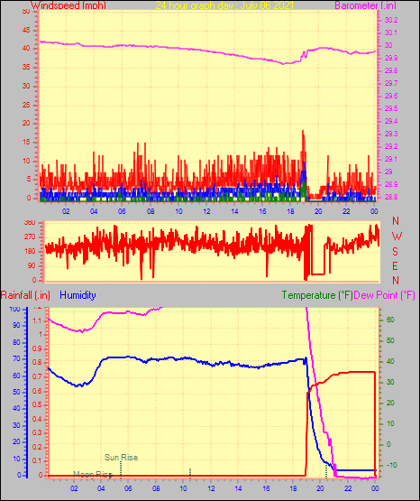 Maximum windspeed = 5.8 mph on day 30 at time 23:55