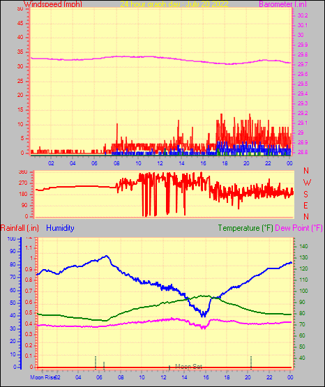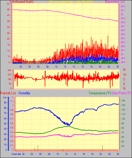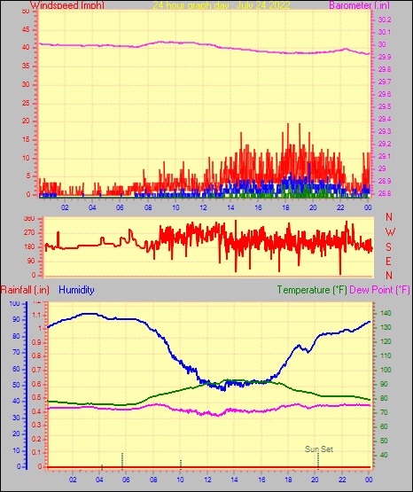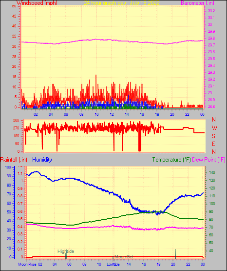 Maximum gust speed = 23.0 mph from 225°( SW) on day 05 at time 21:47