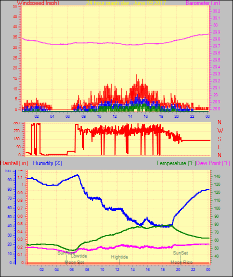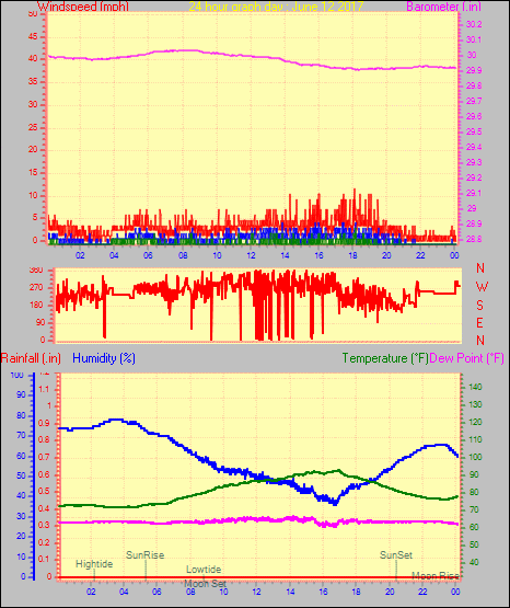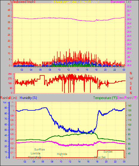 Maximum windspeed = 13.8 mph from 225°( SW) on day 29 at time 18:44