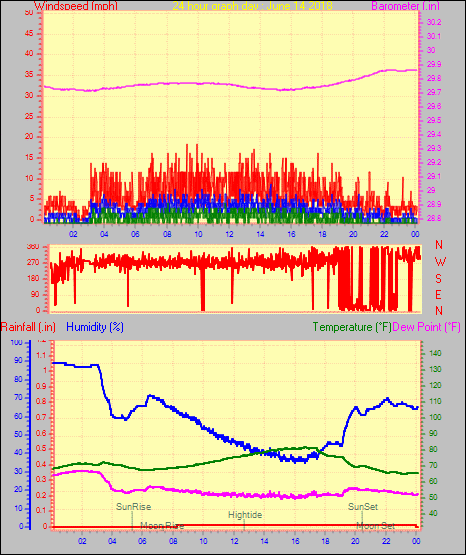 Maximum gust speed = 11.5 mph from 250 °(WSW) on day 29 at time 17:18
