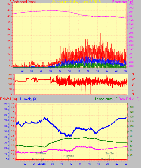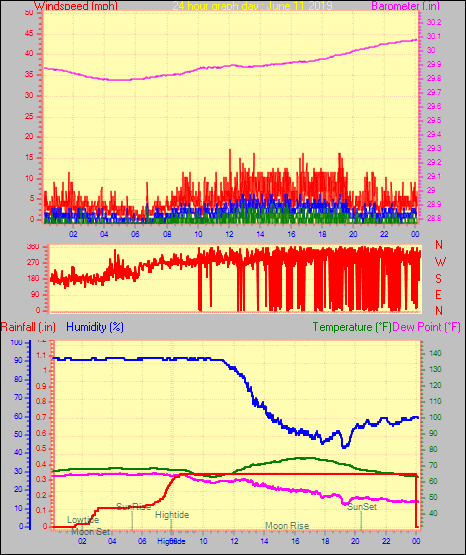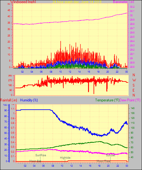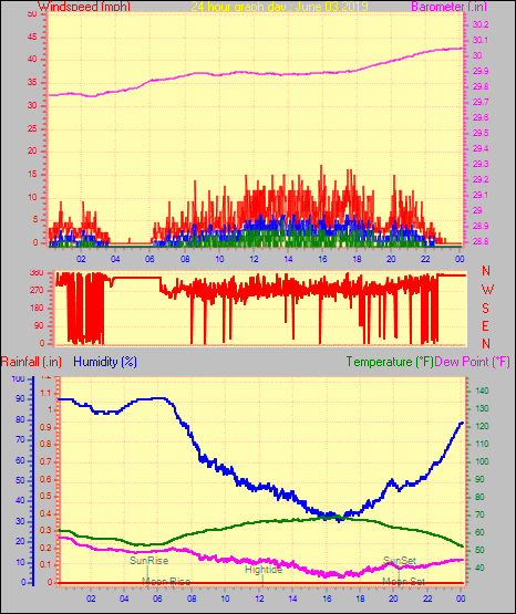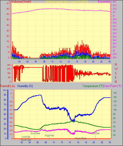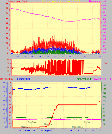 Maximum windspeed = 12.7 mph from 360°( N ) on day 30 at time 14:52