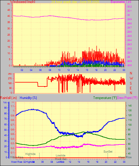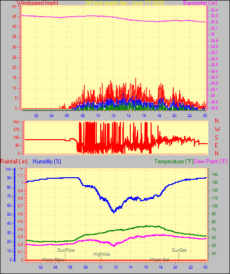 Maximum windspeed = 6.9 mph on day 29 at time 14:06