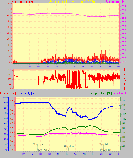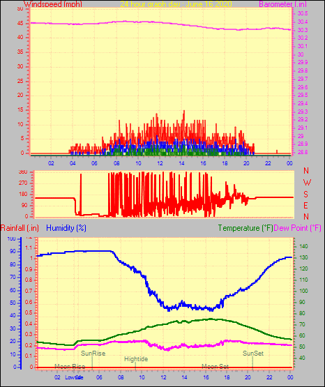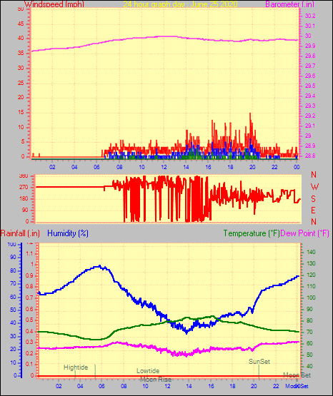 Maximum windspeed = 6.9 mph on day 03 at time 21:31