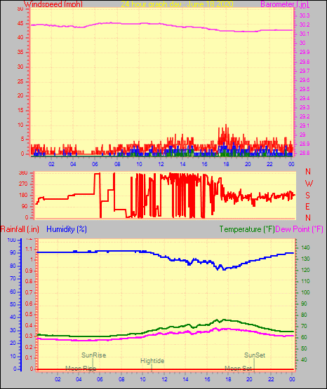 Minimum dewpoint = 61.0°F on day 30 at time 1:36