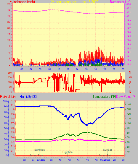 Maximum gust speed = 15.0 mph from 155 °(SSE) on day 04 at time 18:41