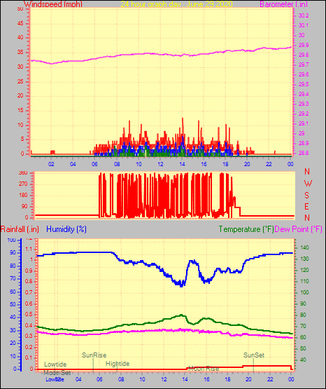 Minimum dewpoint = 63.7°F on day 28 at time 5:21