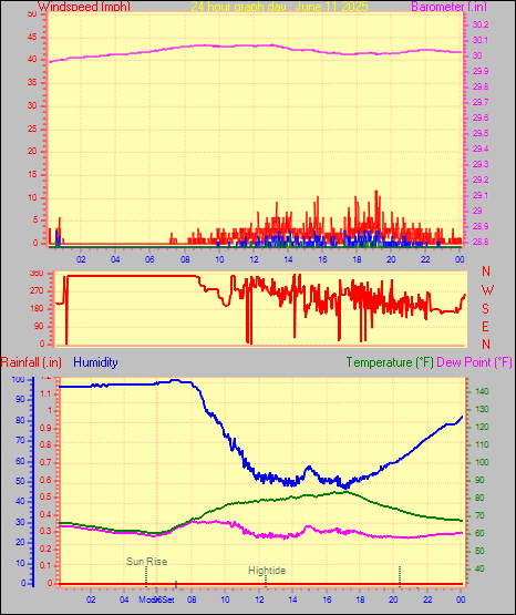 Maximum gust speed = 11.5 mph from 238 °(WSW) on day 30 at time 18:12