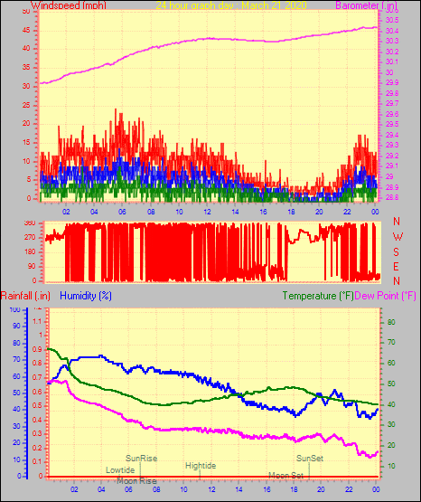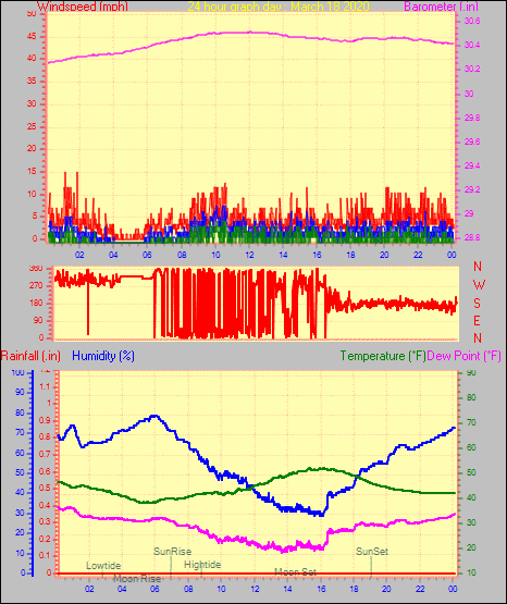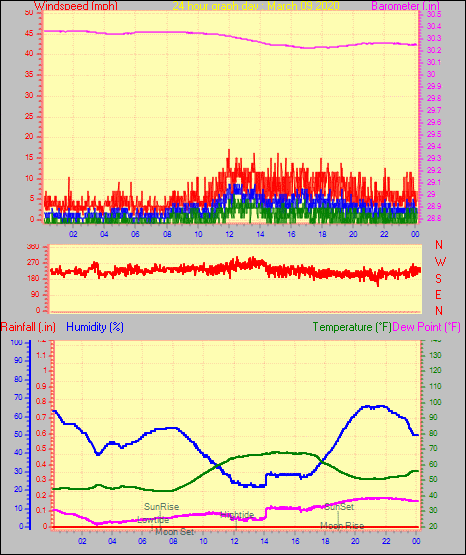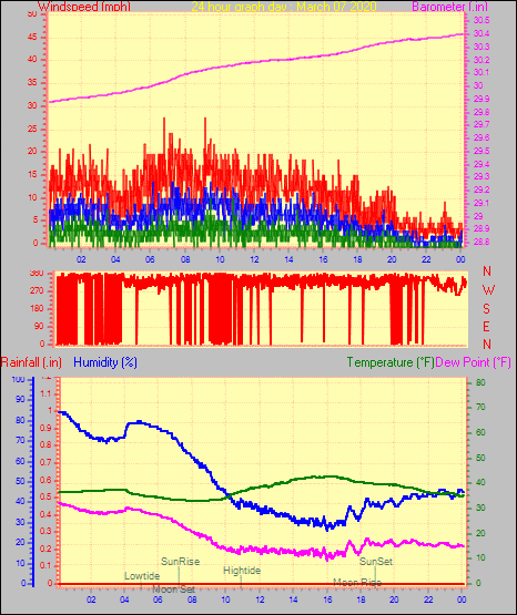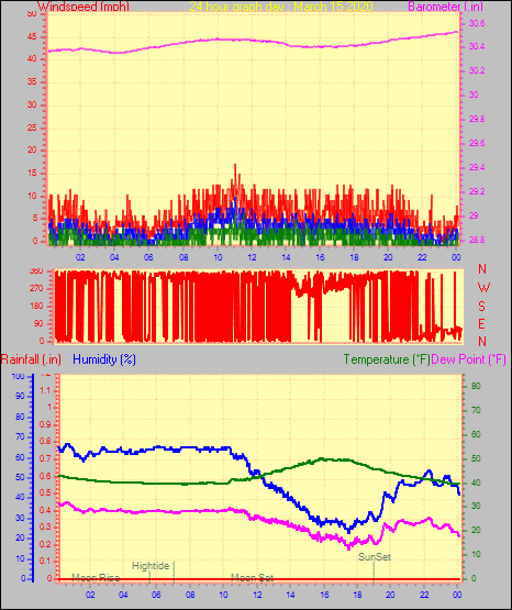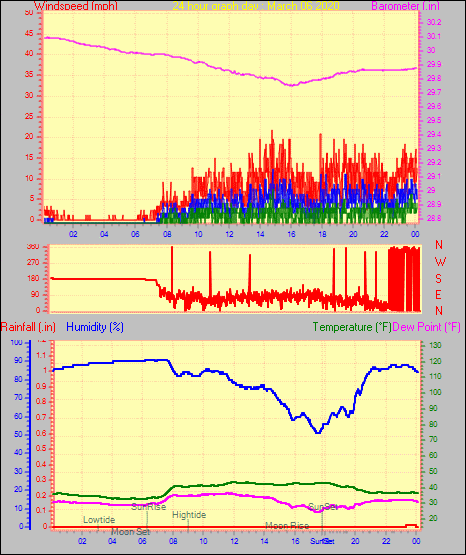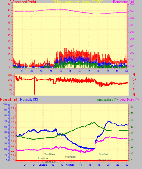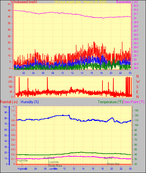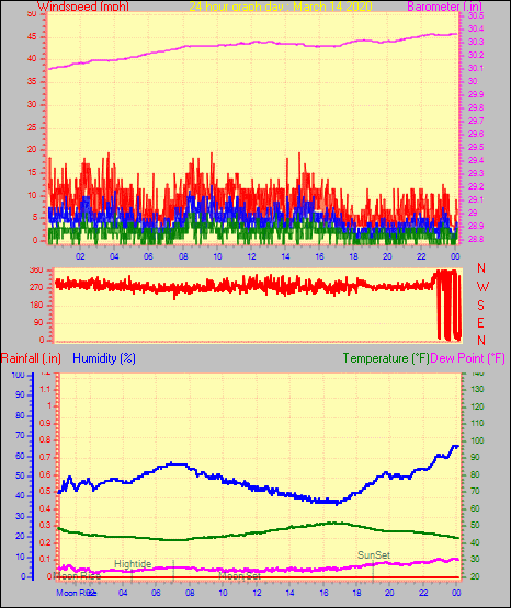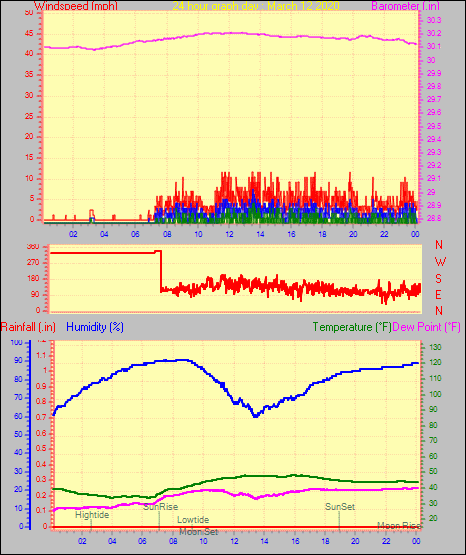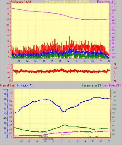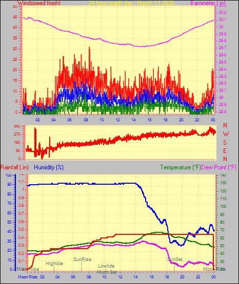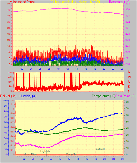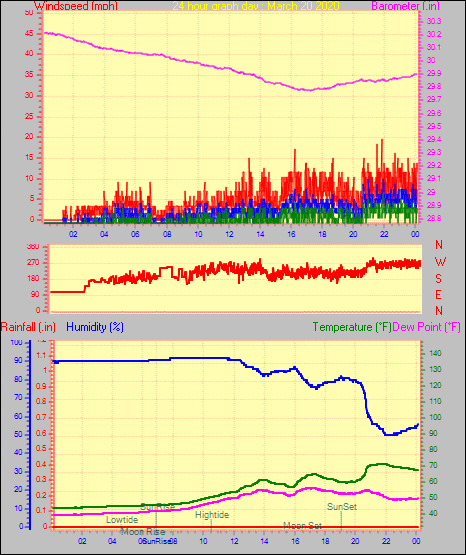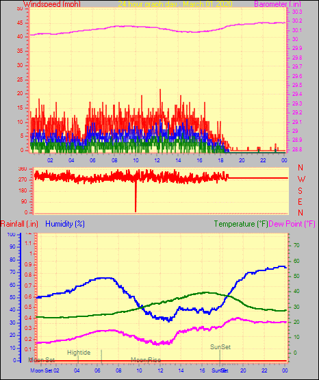 Maximum windspeed = 10.4 mph on day 30 at time 03:24