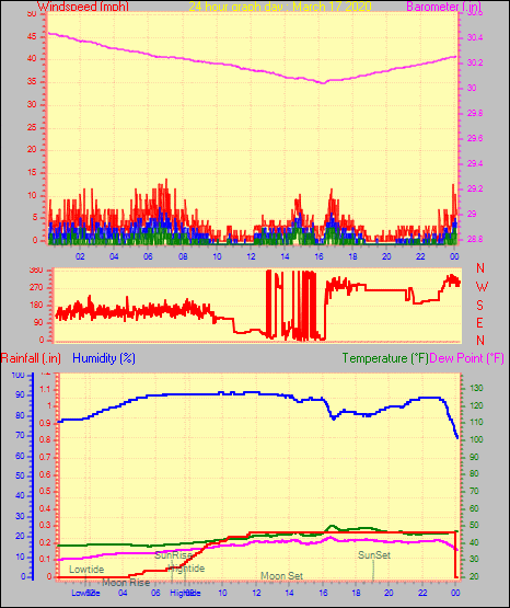 Maximum windspeed = 16.1 mph from 00°( N ) on day 13 at time 08:04