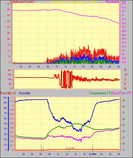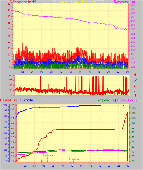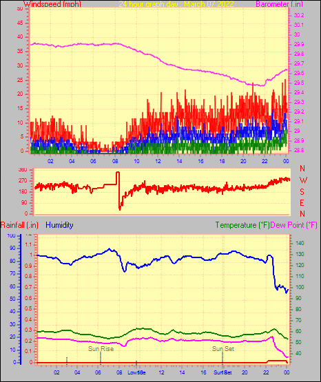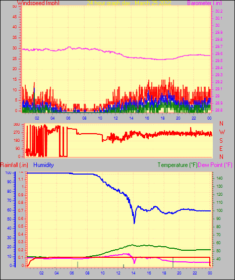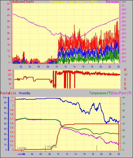Minimum pressure = 29.916 in. on day 01 at time 23:41