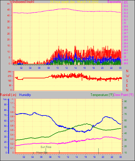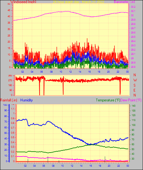 Maximum gust speed = 17.3 mph from 305 °( NW) on day 30 at time 01:39
