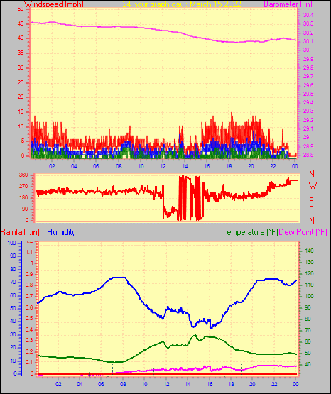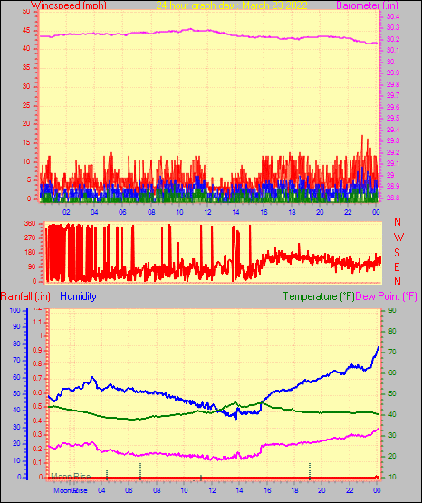 Maximum windspeed = 5.8 mph on day 30 at time 00:03