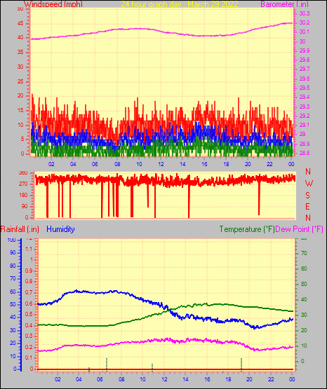 Minimum temperature = 22.9°F on day 29 at time 04:34