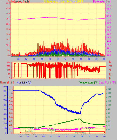 Maximum gust speed = 16.1 mph from 334 °(NNW) on day 29 at time 05:56