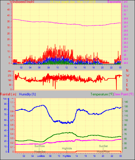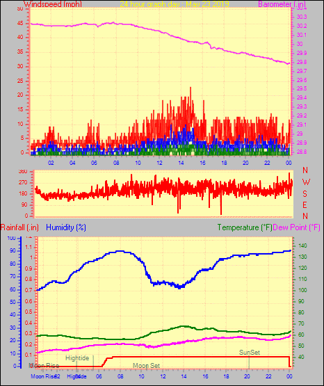 Maximum windspeed = 6.9 mph on day 29 at time 05:57