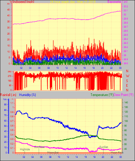 Maximum pressure = 29.994 in. on day 04 at time 00:40