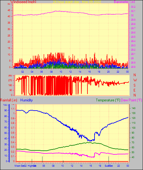 Maximum dewpoint = 44.3°F on day 01 at time 00:00