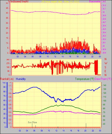 Maximum windspeed = 6.9 mph on day 30 at time 16:42