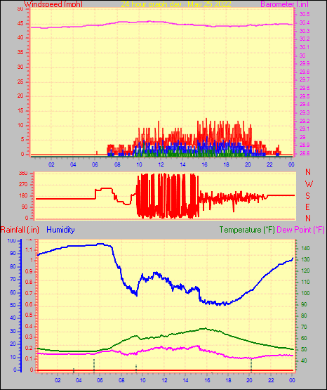 Maximum gust speed = 11.5 mph from 209 °(SSW) on day 29 at time 19:53