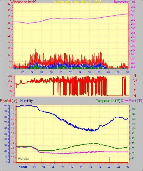 Maximum windspeed = 6.9 mph on day 04 at time 11:34