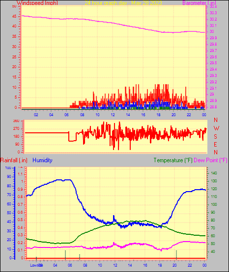Minimum dewpoint = 42.5°F on day 28 at time 18:12