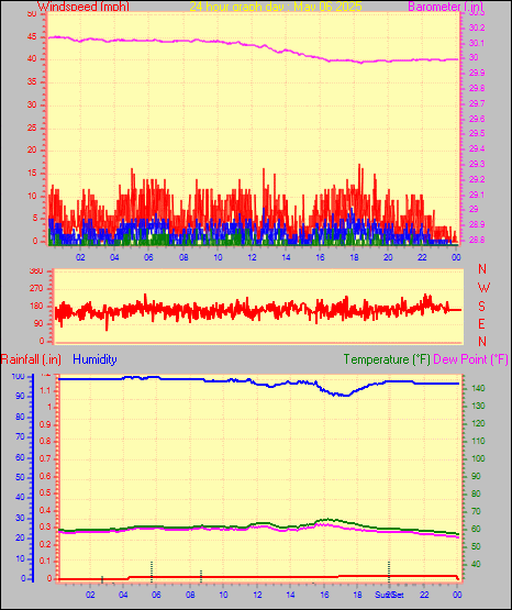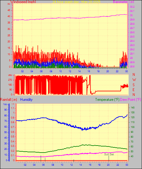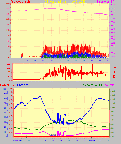 Maximum windspeed = 5.8 mph on day 30 at time 18:48
