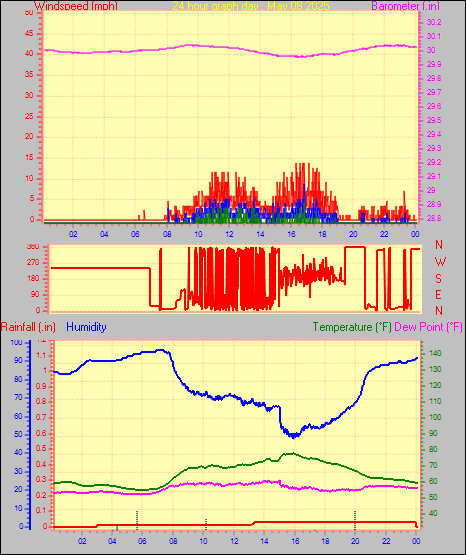 Maximum dewpoint = 66.5°F on day 30 at time 15:13