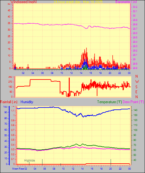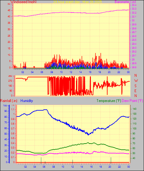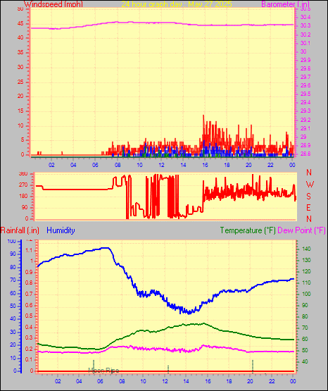 Maximum gust speed = 15.0 mph from 131 °( SE) on day 30 at time 17:05