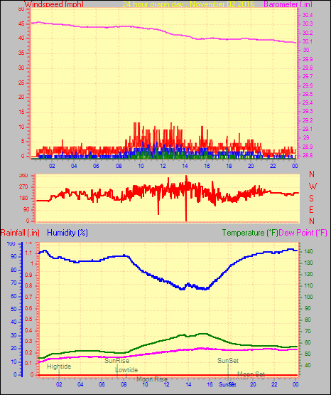 Maximum windspeed = 13.8 mph on day 29 at time 15:55
