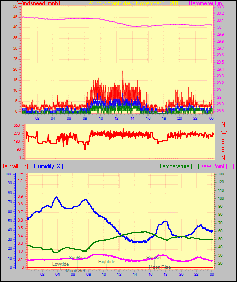 Maximum windspeed = 8.1 mph on day 30 at time 16:41
