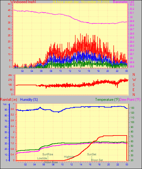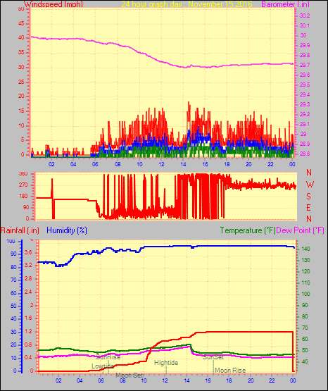 Maximum rain per minute = 0.02 in. on day 30 at time 23:05