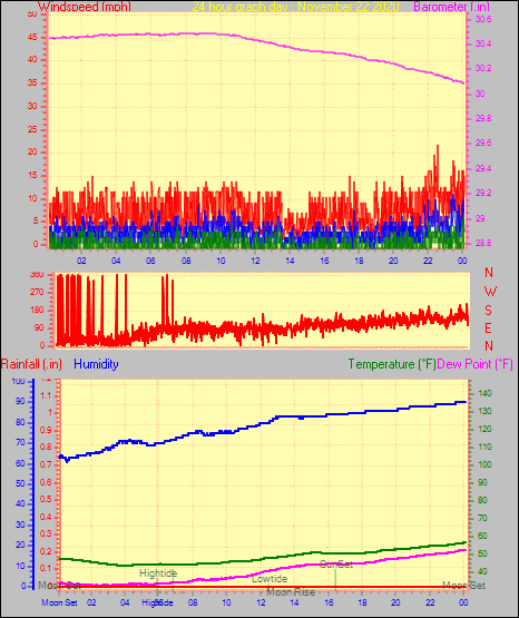 Minimum pressure = 29.432 in. on day 30 at time 19:40