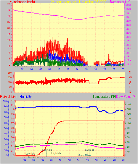 Maximum rain per minute = 0.00 in. on day 03 at time 23:59