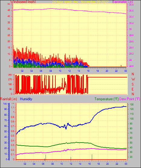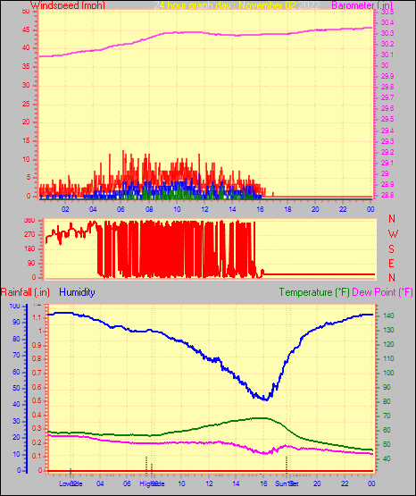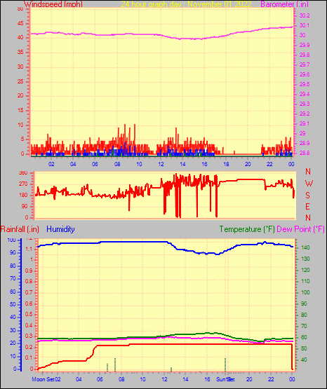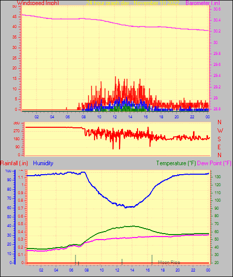 Maximum rain per minute = 0.02 in. on day 30 at time 16:43