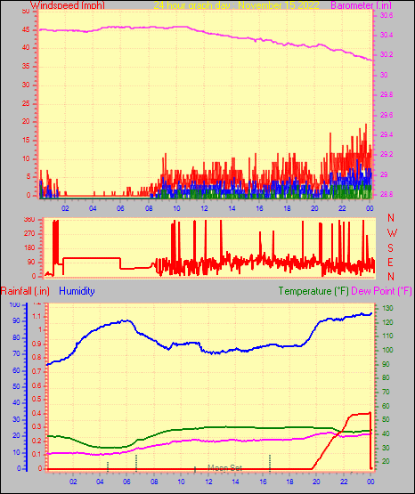 Maximum windspeed = 19.6 mph from 286°(WNW) on day 30 at time 18:41