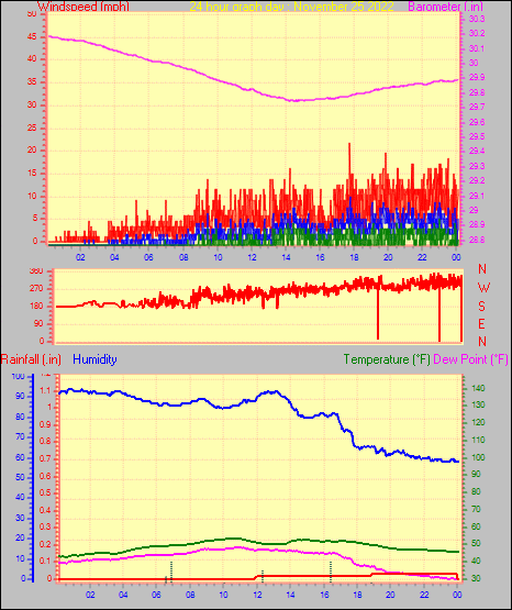 Minimum dewpoint = 29.6°F on day 30 at time 0:04