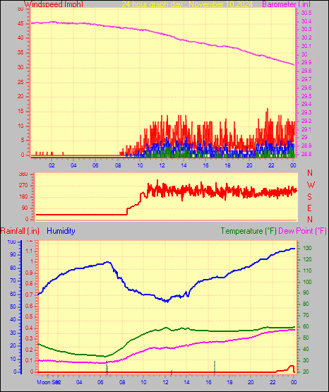 Maximum windspeed = 16.1 mph from 053°( NE) on day 09 at time 00:59