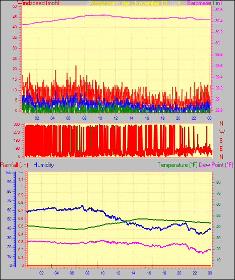 Maximum windspeed = 8.1 mph on day 03 at time 01:59