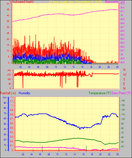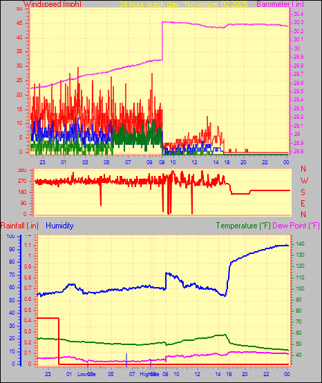Maximum gust speed = 23.0 mph from 284 °(WNW) on day 30 at time 09:31
