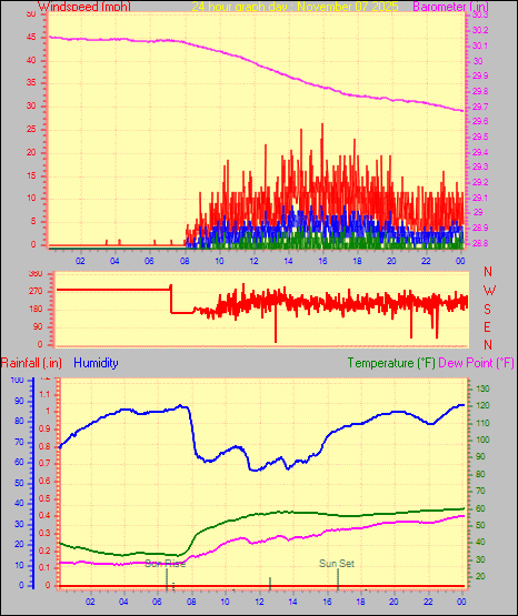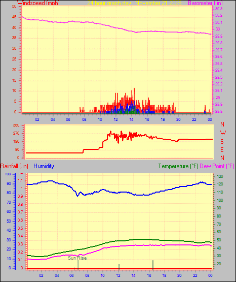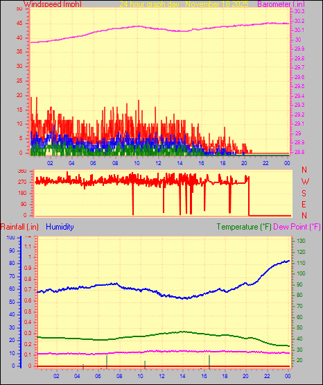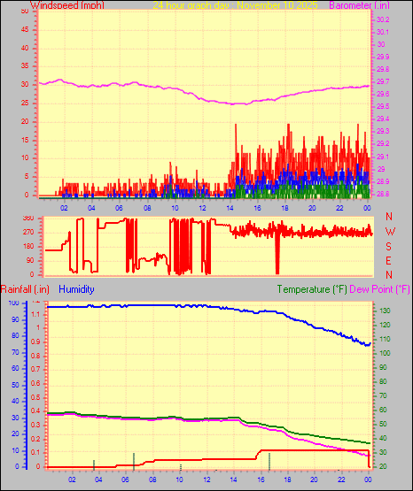 Maximum windspeed = 11.5 mph on day 29 at time 04:08