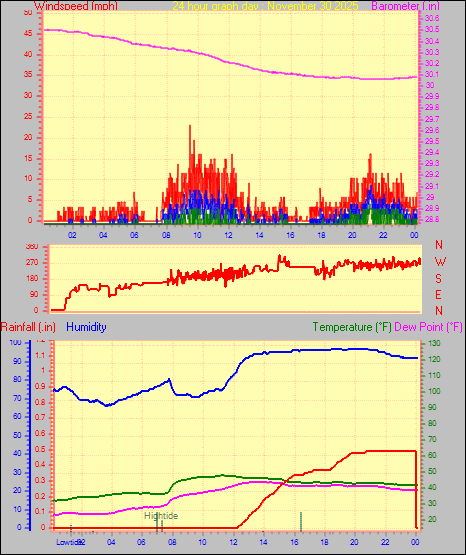 Maximum pressure = 30.508 in. on day 30 at time 00:24