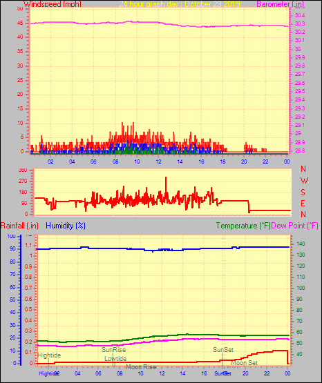 Maximum windspeed = 5.8 mph on day 30 at time 23:12