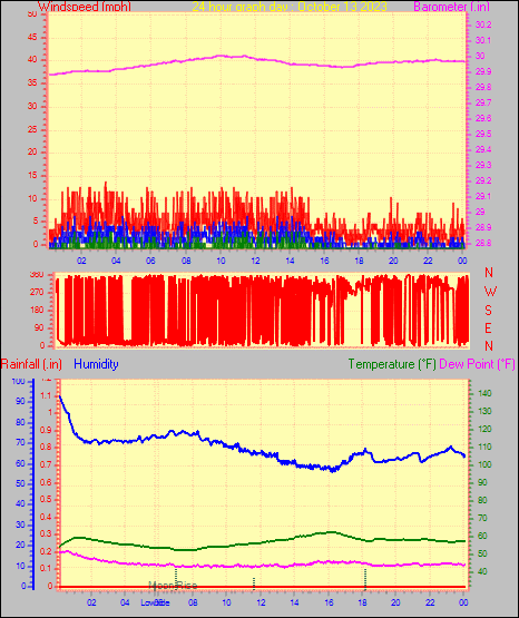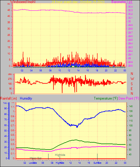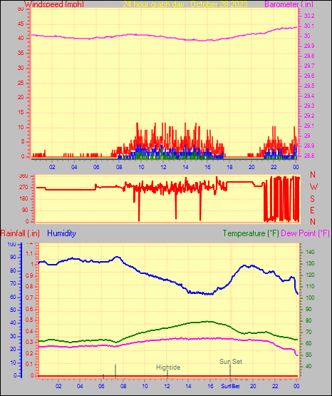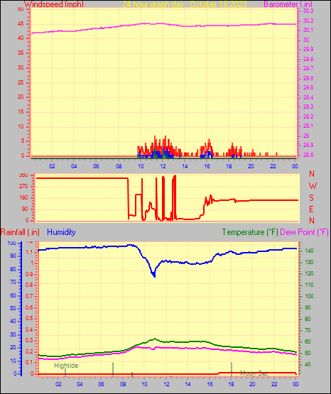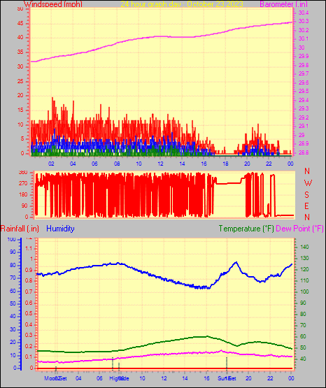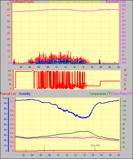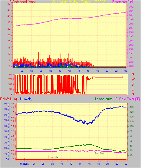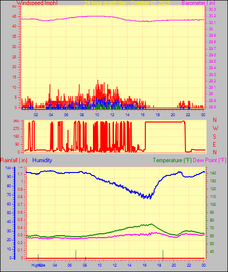 Maximum windspeed = 10.4 mph from 137°( SE) on day 30 at time 22:28