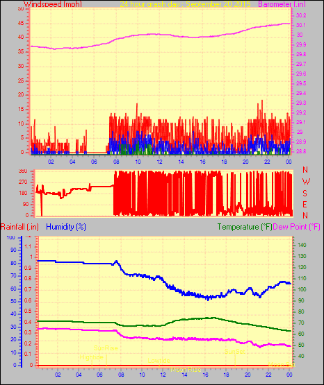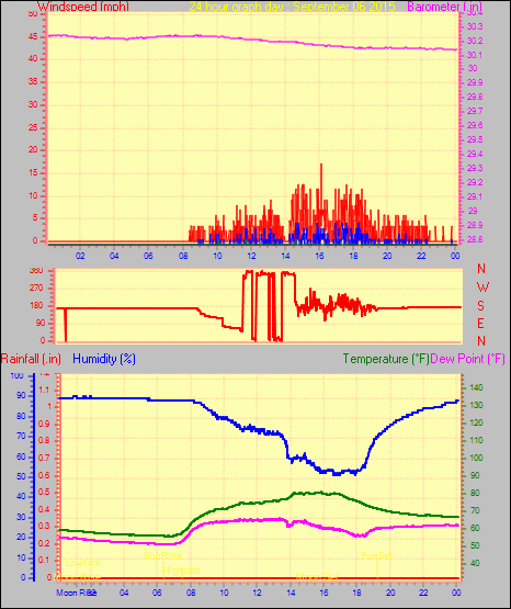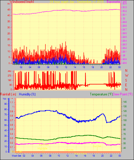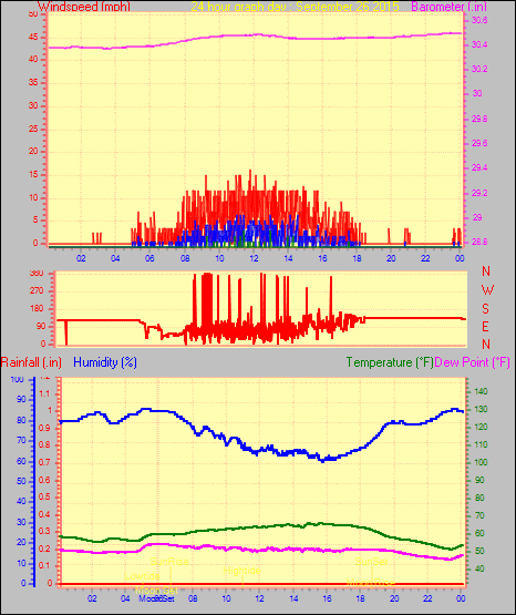 Maximum gust speed = 25.3 mph from 180°( S ) on day 30 at time 07:26