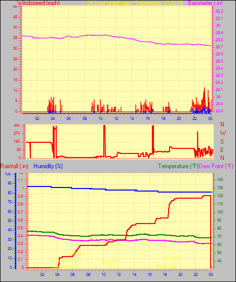 Maximum rain per minute = 0.02 in. on day 30 at time 06:23