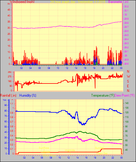 Minimum pressure = 29.66 in. on day 13 at time 02:26
