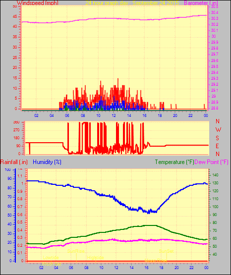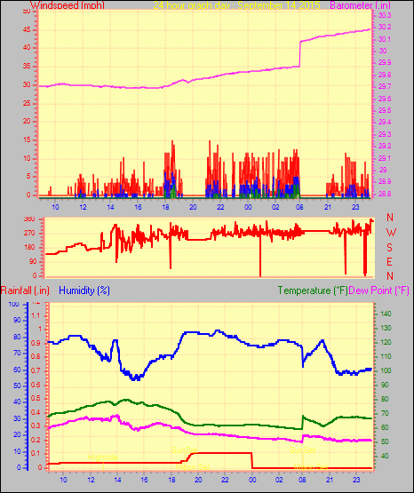 Maximum windspeed = 10.4 mph from 023°(NNE) on day 30 at time 23:15